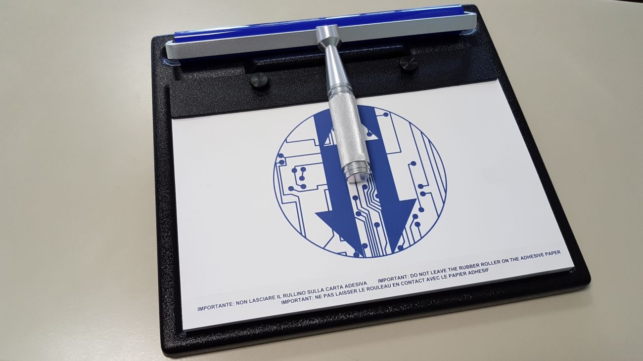 Waste Pad Holder can be used to keep a 50 sheets Adhesive Waste Pad block and a 150 or 300 mm Cleaning Roller in a proper position to help the operator daily work.