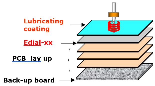 EDIAL is an aluminum entry board with a special lubricating thermoplastic water-soluble coating. EDIAL improves the position accuracy and the coating helps to clean the tool at every hole. Dramatically increases drill life and productivity.